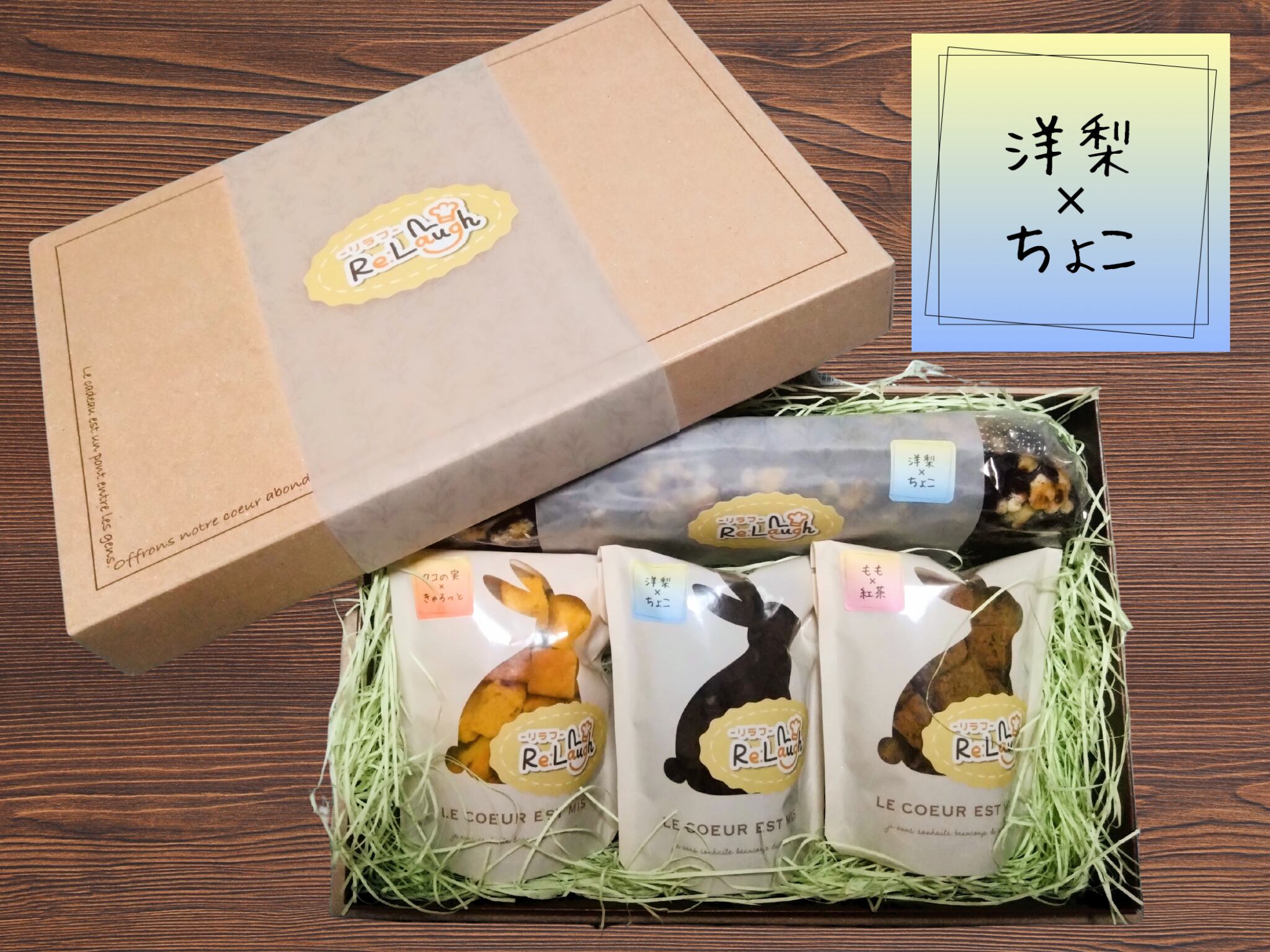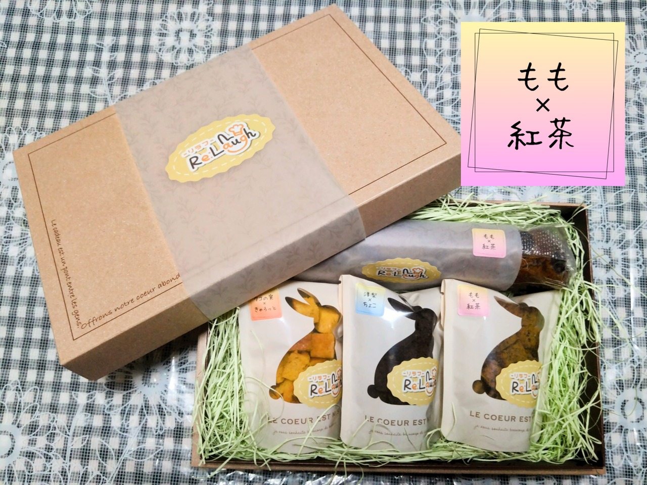 パウンドケーキは、クコの実×きゃろっと・洋梨×ちょこ・もも×紅茶の3種類からどれがひとつお選びください。