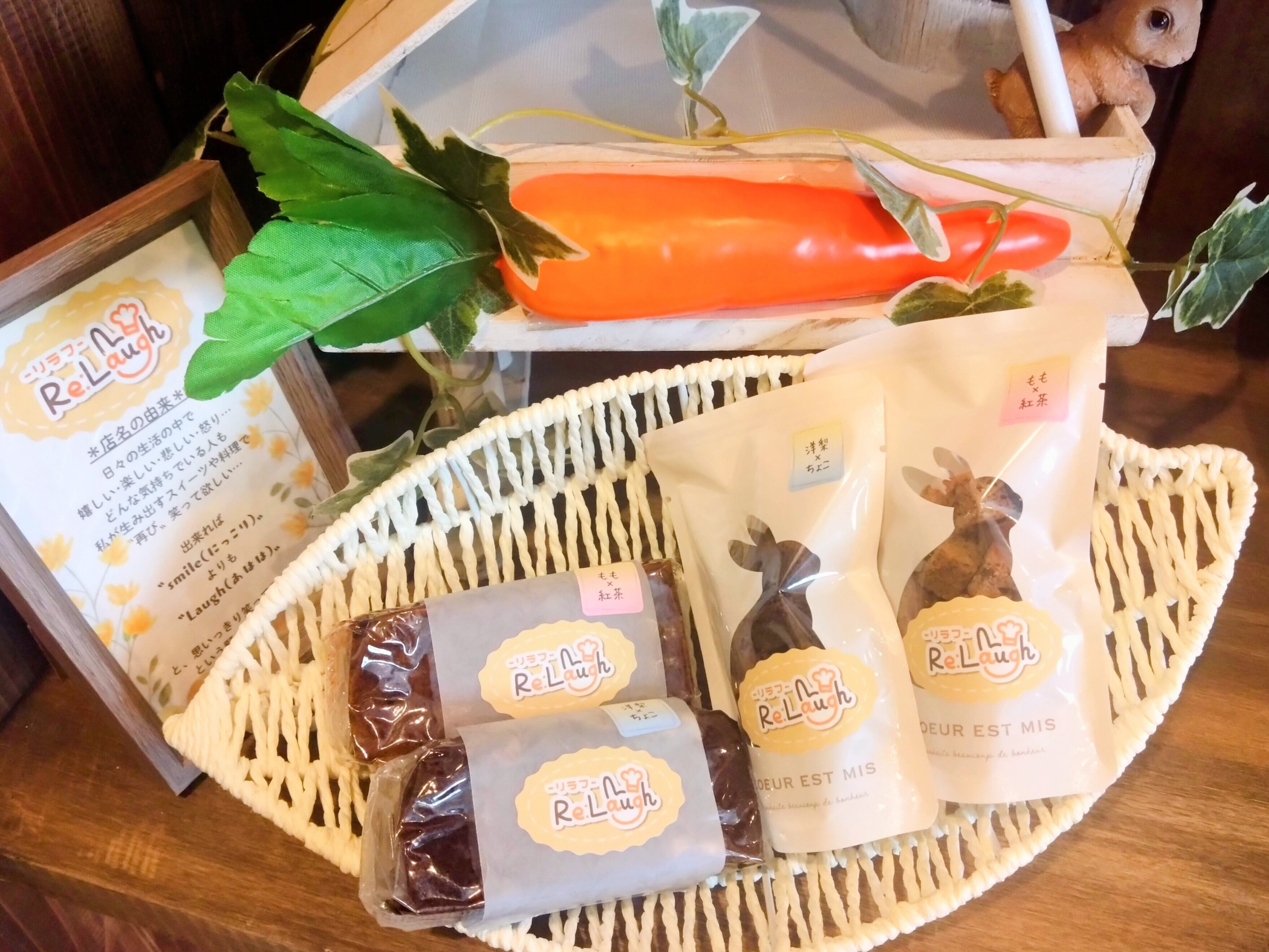 Re:Laughの薬膳パウンドケーキ(ハーフサイズ)2種類と、まかないラスク(1袋40g)2種類のセットです。