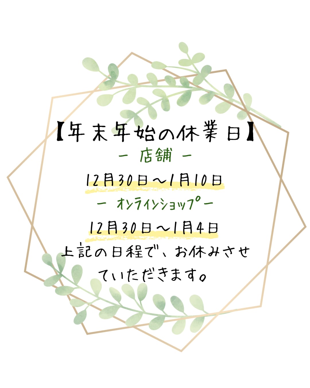 オンラインショップの年内営業は、12月29日15:00注文分までとさせていただきます。